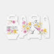 Ilustrações de aquarelas de flores de primavera amarelas e roxas com um coelho branco sobre as pernas traseiras. alternativo da cesta da Páscoa do excelente! O texto no verso diz "Felz pascoa dos Harrisons." Personalize com seu nome e mensagem personalizada!