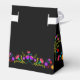 Caixa de favor das flores de fiesta mexicanas - personalizadas com seu nome, ocasião ou outro texto personalizado. Este design colorido como flores do estilo de arte popular bonito em roxo rosa vermelho e amarelo em um fundo preto com letra de escrita de pincel rosa.