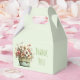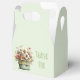 Caixa de favor minúscula com um vaso de flores caprichoso e elegante. Cores verde, rosa e creme. Colocado em um vaso verde com um pano xadrez. Atmosfera rústica vintage.
