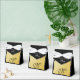 Uma caixa de favor luxuosa com efeito folha de ouro rodeada por preto da meia-noite com letras brancas e fita contrastantes. Você pode personalizá-lo clicando no link personalizar. Esta é parte de uma coleção de casamento elegante que pode ser totalmente personalizada.