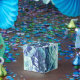 Caixinha De Lembrancinhas fragmentos de memórias, em azul e verde: