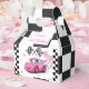 Mande seus pequenos pilotos para casa com essas caixas de adivinhação de meninas correndo! Apresentando um carro de corrida cor-de-rosa, estrelas de ouro espumantes e uma clássica borda de bandeira branca e preta, essas caixas são perfeitas para segurar guloseimas, brinquedos pequenos ou favoritos para festas. Para personalizar com o nome e a idade do seu filho, clique em "Personalizar" e use a terceira exibição desdobrada. Estas caixas de favor coordenam-se lindamente com pratos correspondentes, guardanapos, banners de bunting, adesivos, portas copos, balões e posters da coleção para uma celebração de corridas totalmente tematizada.