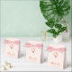 Uma elegante caixa de favoritos de rosa e rosa e ouro. No flap, ele tem uma crista vintage com uma cruz, ambas de ouro (faux) rosa. A mensagem Obrigado está escrita na parte inferior, num elegante guião rosa dourado, a ocasião e a data são escritas em bonés cor-de-rosa por baixo. O plano de fundo é cor-de-rosa-claro.