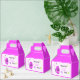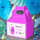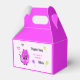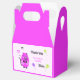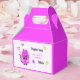 Gato lilás de cor-de-rosa com coração e balões para festa de aniversário