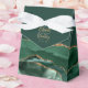 Esta elegante caixa de favores moderna apresenta uma esmeralda cor d'água verde agate design aparada com brilho dourado. Personalize-o com os nomes da noiva e do noivo em um guião de manuscrito dourado sobre um grande e verde esmeralda, junto com a data do casamento abaixo.