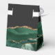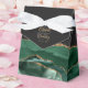 Esta elegante caixa de favores moderna apresenta uma esmeralda cor d'água verde agate design aparada com brilho dourado. Personalize-o com os nomes da noiva e do noivo em um guião de manuscrito dourado sobre uma grande cinza e em um fundo preto ardente, juntamente com a data do casamento abaixo.