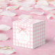 Explore o adorável chá de presente da doce menina Coquette com o tema da Coquette, caixas com um charmoso arco rosa em padrão gingham. Aumente a celebração com essas bonitas e personalizáveis caixas de favores. Perfeito para uma elegante celebração clássica entre mulheres.