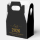 Stylish elegant custom graduation party supply! Celebrate the graduate's accomplishment in style with this trendy graduation favor box. Design features "Class of 2026" in gold script typography on a classic black background. Personalize this product by adding the name and school name. Perfect graduation keepsake. Easy to customize. Congratulations!