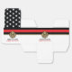 Este design apresenta uma bandeira de bombeiros com listras pretas e brancas, e uma fina faixa vermelha também. "Parabéns" e o crachá de bombeiro ficam acima do nome do bombeiro graduador. Esta design também funciona como excelente para se aposentarem bombeiros, tenentes ou chefes. Celebre em estilo!