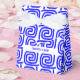 Um medidor decorativo grego tradicional repete o padrão de trenó-chave em azul e branco de forma tão na moda e fácil de personalizar com nomes pessoais, monogramas ou texto de sua escolha