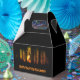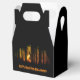 Caixa de presentes do Dia das Bruxas da Floresta Assombrada Escura apresentando uma casa assustadora na floresta escura.