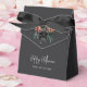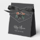 Um design de Dia das Bruxas Chico assustador, com uma ilustração do crânio floral tropical tocado com flores laranja e peludas e folhagem verde da selva, num fundo negro enfumaçado. Personalize esta caixa de favoritos exclusiva e elegante do Dia das Bruxas com duas linhas de texto personalizado.