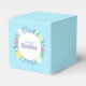 Happy Easter favor boxes decorated with flowers and eggs on blue background