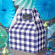Uma caixa de favoritos de estilo elegante com um padrão clássico de gingham verificado em uma fazenda azul e branca.