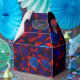 Caixinha De Lembrancinhas Hexágono azul misturado com curvas vermelhas sobre