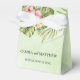 Hibisco rosa e branco trendy em aquarela e folhas exóticas em fundo verde