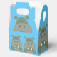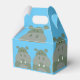 Caixa de favoritos de hippo festa de aniversário divertida para decoração de festas de aniversário. Um design de decoração fofo para diversão infantil. O hipopótamo seria excelente para uma festa do tema do zoológico ou se a criança ama o hipopótamo. O fundo é azul e o hipopótamo em tons de verde.