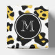 Esta tendência, divertida, manchas-leopardo negras e amarelas padrão de impressão animal é um fundo perfeito para uma etiqueta circular branca e preta com a sua inicial em texto branco em uma letra elegante. GraphicsByMimi © Personalize esta design de impressão em negrito, na moda, giro-leopardo com seu monograma, texto, inicial ou nome. Use o campo modelo ou a opção "personalizá-lo" para um menu de edição de cheio. A. Outras cores disponíveis.