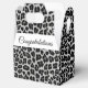 Celebrar eventos especiais com uma impressão de leopardo preto e branco sobre neve. Excelente de solteira, aniversários e festas temáticas. Altere a mensagem na seção personalizada.