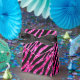 Uma caixa de favores moderna e rosa-quente com padrão de animais com uma impressão de glam-zebra brilhante com faíscas, com certeza trazendo a moda em qualquer garota feminina! Imagem impressa plana, não brilho real.