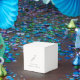Caixa de favoritos de casamento elegante com um design clássico com seu monograma em uma fonte de script junto com seus detalhes de evento em uma fonte de serifa tradicional.