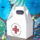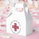 Mande seus convidados cansados com alguns elementos essenciais de recuperação (alívio da dor, antiácidos, chiclete, etc.) nessas caixas bonitinhas e inteligentes. O favorito único para o casamento apresenta "Hangover Alivio Kit — In Sease and in Health" em letras negras curvas em torno de uma ilustração vermelha que contém suas iniciais e a data do casamento.