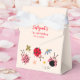 Caixa de favorecimento de festa de aniversário do tema de joia branca com ilustração de insetos vermelhos e cor-de-rosa com flores.