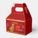 Corte de papel bonito de um rato com sombra colocada sobre um fundo decorativo com lanternas e flores chinesas estilizadas. Design on gable favbox com Feliz ano novo em chinês e Ano do rato (estilo caligrafia). Você pode mudar facilmente a posição e o tamanho do rato, desejos chineses e Ano do rato (imagem de texto). Disponível em outros estilos: cubo clássico, tenda, saída. Cartão de saudação, convite e muito mais... Perfeito para o Ano Novo Chinês do Rato 2020.