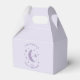 Bela caixa de chá de fraldas para a sua festa do tema de estrela. Há uma forma de lua e estrelas em folha falsa de lavanda. Personalize este produto adicionando o nome da mamãe a ser e a data do evento.