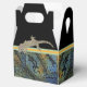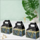 Caixa de favores de estilo preto elegante com uma imagem de verde geométrico, azul, preto e ouro lindo com um lagarto ou tokay, um tipo de lagarto proeminente em Bali, adornado com uma fita azul, verde e dourada e opcional tokay à frente e atrás. Veja confetti correspondente, convite, envelope, etiqueta, bolsa de favor, etiqueta de favor, sacos de presentes, adesivo em forma de coração e papel de embrulho. Veja toda a coleção Bali Retreat Favor Box em TOUCHES ESPECIAIS | Seção Favoritos para festas. Este produto não está associado nem afiliado ao titular original dos direitos de autor.