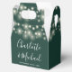 Caixa de lembrança de casamento elegante com luzes de corda, nomes em letra cursiva sofisticada e data especial em fundo verde esmeralda. Você pode personalizar com sua própria mensagem de agradecimento no verso. Uma maneira perfeita de agradecer aos seus convidados! Criado por Thisisnotme