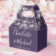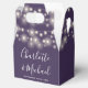 Caixa de lembrança de casamento elegante com lindas luzes de corda, nomes em script de assinatura chic e data especial em fundo roxo. Você pode personalizar com sua própria mensagem de agradecimento no verso. Uma maneira perfeita de dizer obrigado aos seus convidados! Criado por Thisisnotme©