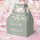 Caixa de lembrança de casamento elegante com luzes de corda bonitas, nomes em letra cursiva sofisticada e data especial em um fundo verde sage. Você pode personalizar com sua própria mensagem de agradecimento no verso. Uma maneira perfeita de dizer obrigado aos seus convidados! Criado por Thisisnotme©