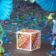Pilhas de macarrões deliciosamente doces e coloridos em caixas de favor com texto "obrigado você" (opção para excluir texto ou personalizar com seu próprio texto).