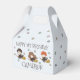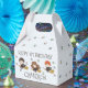 Make your little one's celebration truly magical with this personalized Harry Potter favor box. The cup features adorable chibi-style illustrations of Harry, Hermione, and Ron flying on their broomsticks amidst a sprinkle of colorful stars. This party favor can be customized with the birthday child's name and age, creating a special and personal touch for your party table. It's the perfect way to serve treats and serves as a wonderful keepsake for a magical celebration.