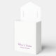Estas caixas de favor de casamento apresentam flores magnólias. A frente e o verso da caixa têm uma flor, noiva e nomes de noivos e data de casamento. Estas caixas de favoritos de casamento fazem parte de uma coleção que inclui uma gama de cheios de papelaria de casamento como convites para casamento, cartões de resposta, cartões de informação, etiquetas de endereço, autocolantes, selos postais, envelopes, autocolantes, cartões de visita, programas, menus e muito mais. Visite a página de coleta em nossa loja para ver o intervalo de cheios.