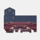 Esta elegante caixa de favores moderna apresenta uma coloração d'água burgundy agate design aparada com brilho dourado. Personalize-o com os nomes da noiva e do noivo em um guião de manuscrito dourado sobre um grande e, junto com a data do casamento abaixo, em um fundo azul marinho.