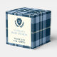 Caixinha De Lembrancinhas Marinho Xadrez Azul Monograma Obrigado Chá de fral