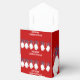 Package your holiday treats and party favors with this elegant "Merry Christmas" gable gift box. The classic red design, adorned with festive white Christmas bells and "Merry Christmas" text, makes it perfect for adding a special touch to your gifts. This style is part of a collection that includes a variety of sizes and other box styles to perfectly fit all your needs.