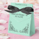 Estas caixas são desenhadas com um elegante fundo verde de menta e padrão impressão preto, e podem ser totalmente personalizadas com a sua escolha de nomes e data! Faz um favor excelente para uma elegante horta verde e preta doce parisiense 16 ou evento.