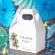 Esta caixa de favor elegante apresenta palmeiras aquarelas e um design moderno minimalista. Esta caixa pode ser usada em qualquer evento temático tropical ou praia, como casamento, chá de fraldas, festa de aposentadoria, etc.