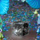 Painéis 3D sobrepostos criam uma vibração interdimensional, em preto e branco.