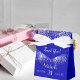 Uma elegante e glamourosa caixa de adoração azul e branca de 21 ruas (ou qualquer idade). Fundo azul real colorido com pó cinza-prateado sujo. Com o texto: Obrigado! Modelos de nome, data de nascimento e data de aniversário e número de idade. Cartas brancas.