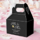 Obrigado seus convidados com essas belíssimas e elegantes caixas de favoritos de casamento. MR & MRS. com noiva e nomes de noivos com data de sobrenome e casamento. Preto e branco com um coração de folha de ouro falso para dar esse toque extra. Ajustado qualquer tema de casamento ou esquema de cores. Todo o texto pode ser editado ou excluído.