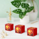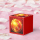 Gráfico com uma bola de natal de ouro sobre fundo vermelho