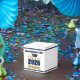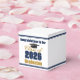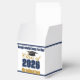 Customize your own navy blue and gold high school Class of 2026 graduate party small square favor box for a college graduation party. Cool varsity letters for the year on great custom labels for senior gift boxes.