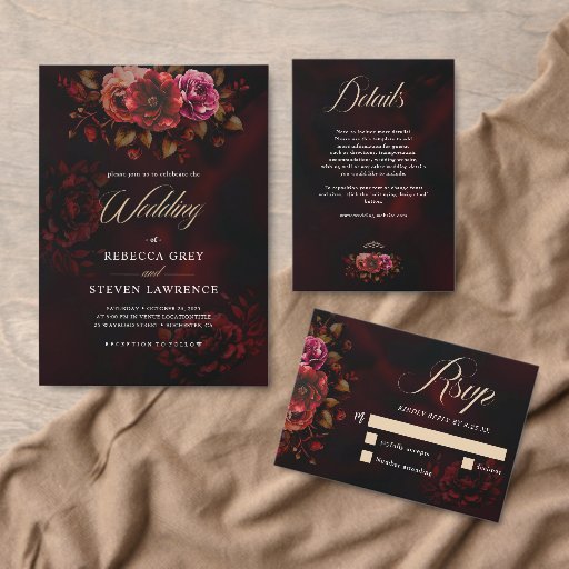 Chic moody dark red and black floral wedding suiteCriado por Zeinab Taha