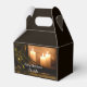 Bela e inspiradora caixa de natal personalizada retrata uma atmosfera pacífica adorável; uma manta com velas brilhantes, luzes na árvore e a amada canção de Natal, "Noite Santa e Silenciosa". Personalize a parte traseira com saudação pessoal ou exclua para um cartão preto.