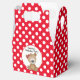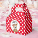 Trate seus convidados festas de aniversário com favoritos para festas nesta adorável caixa de favores com um ursinho bonitinho com uma arco no cabelo. A cor de fundo vermelha desta caixa de favoritos pode ser alterada para qualquer outra cor selecionando o botão "personalizá-la" e escolhendo uma cor de fundo diferente.