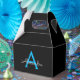 Caixinha De Lembrancinhas Nome do Monograma Girly de Script Preto Azul